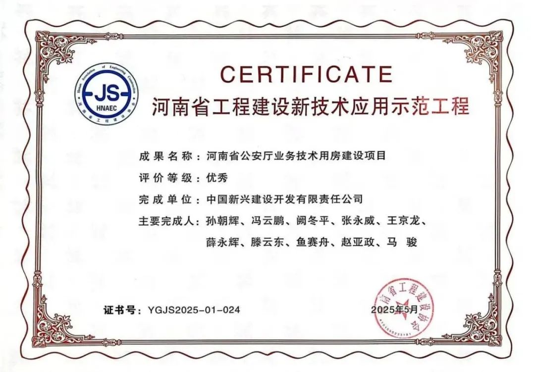 • 新兴公司河南省公安厅业务技术用房建设项目被评为河南省...